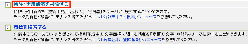 ①の[特許・実用新案を検索する]をクリック。